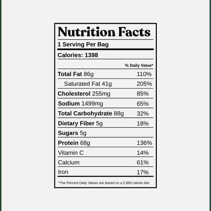 Alaskan salmon fillet (skinless), Italian wheat pasta* (organic durum wheat semolina), Grade A heavy cream (contains less than 1% carrageenan), parmesan cheese (pasteurized part-skim milk, cheese culture, salt, enzymes, cellulose powder, potassium sorbate to protect flavor), spinach*, grape tomatoes, basil*, parsley, olive oil, garlic, sea salt, black pepper